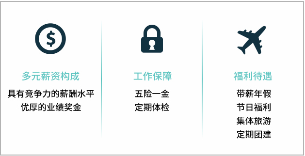 嘉宝利集团有着成熟完善和富有特色的薪酬福利体系,并通过人性化的管理理念得以落地。集团向员工提供具有市场竞争力的薪酬、人性化的工作环境,保障员工最切身利益;并通过设置高绩效导向的激励机制,激发员工活力,创造更大价值,从而实现公司和个体的双赢。