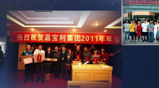 董事长讲话结束后,大屏幕上播放了嘉宝利25年发展历程短片。