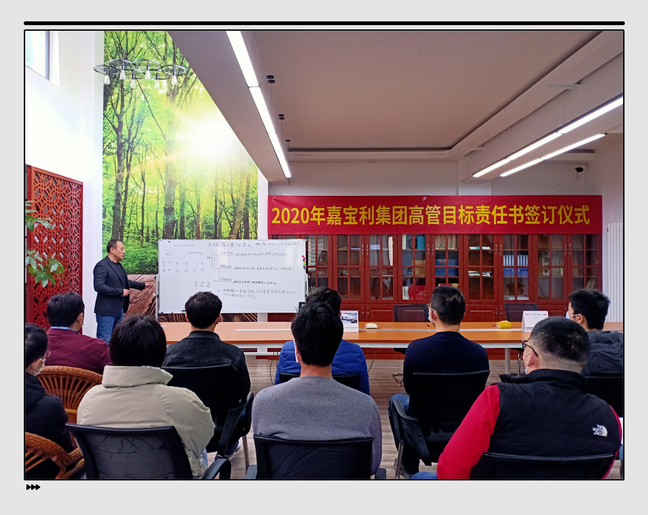 董事长臧永军先生分别与沃斐特总经理李文龙、嘉宝机电项目中心总经理刘涛、项目中心工程总监李孝武、工程二处总经理杜天洋、工程四处总经理付海朋签订了目标责任书。